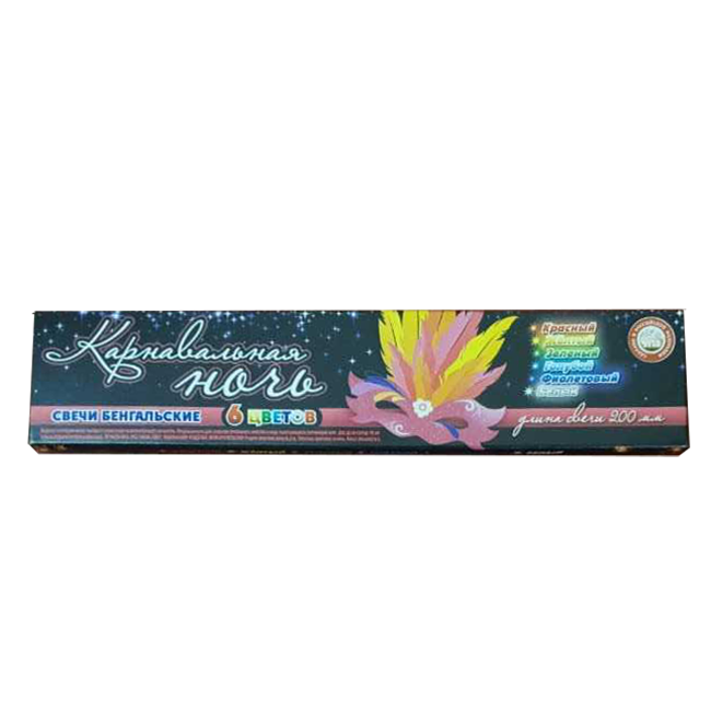 - Цветные бенгальские огни - наборы бенгальских свечей, дающих цветную искру.